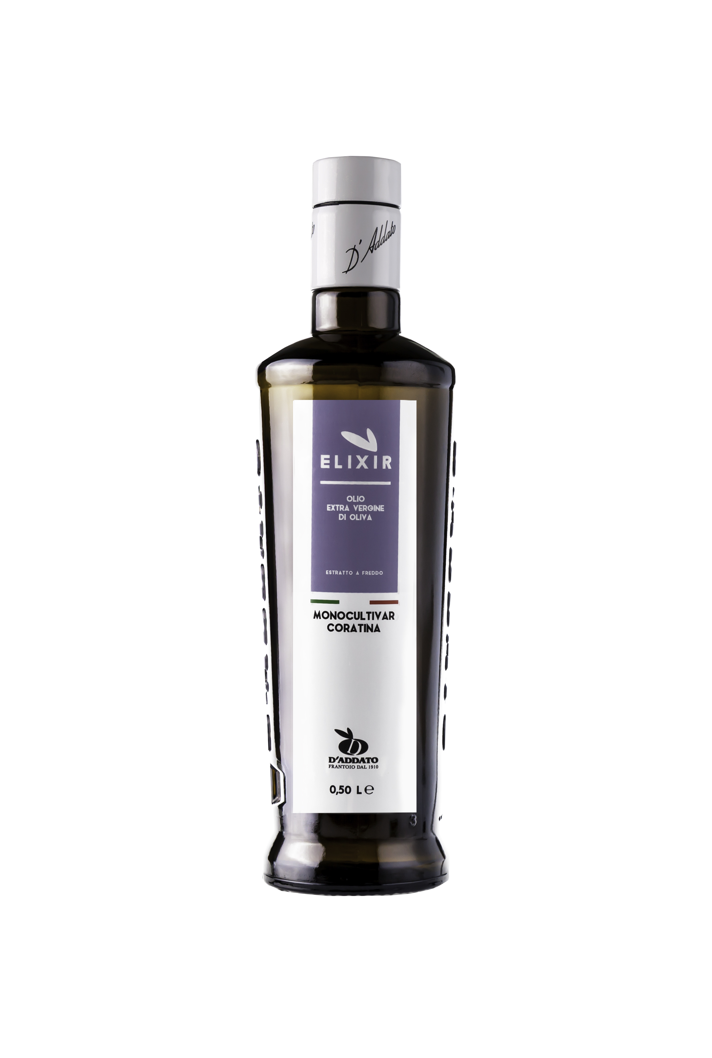 Elixir è prodotto nel nostro frantoio dall’estrazione a freddo delle migliori olive di varietà esclusivamente Coratina, raccolte a mano o con mezzi meccanici negli agri di Bisceglie, Trani, Corato, Andria e frante entro 18 ore dalla raccolta.